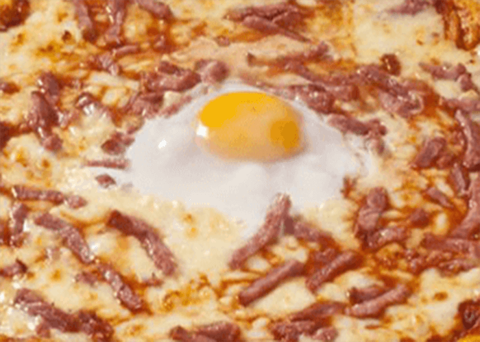 Tomate, mozzarella, bacon, champignons, reblochon, oignons, oeuf.