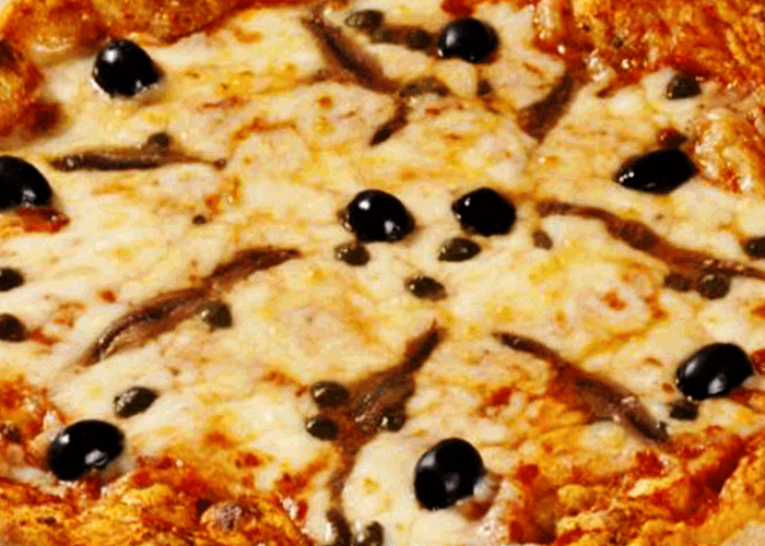 Tomate, fromage, anchois, câpres, olives.