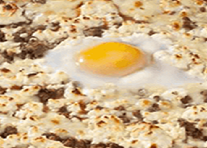 Tomate, fromage, boeuf haché, oeuf.