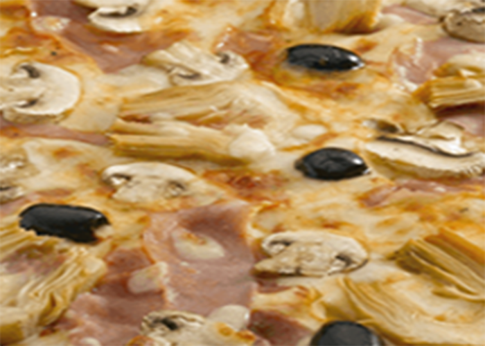 Tomate, fromage, jambon, artichauts, champignons, olives, oeuf.