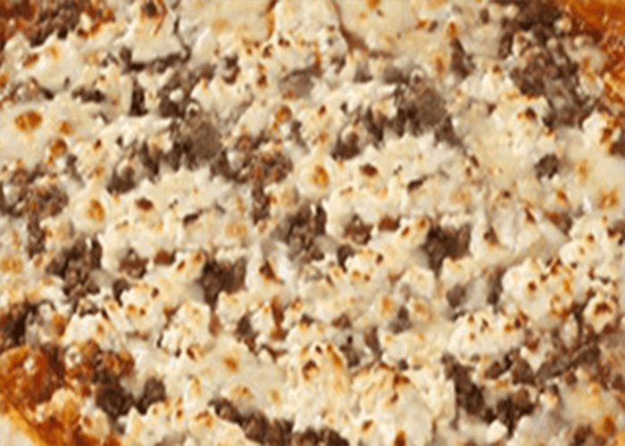 Tomate, fromage, boeuf haché, oignons, piments forts.