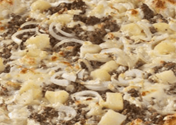 Tomate, fromage, boeuf haché, oignons, pommes de terre, reblochon.